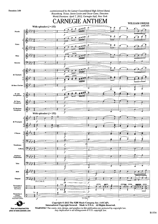 Digital Sheet Music for Carnegie Anthem - Score by William Owens scored for Concert Band; id:440718