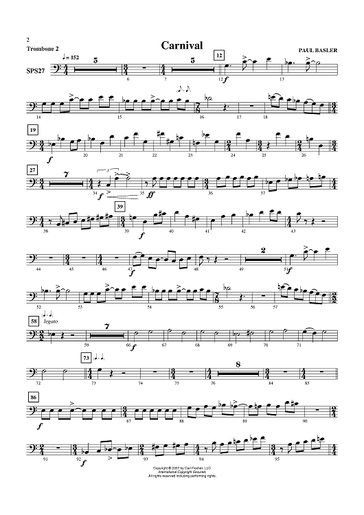 "Carnival - Trombone 2" Sheet Music by Paul Basler