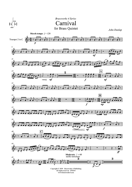 Digital Sheet Music for Carnival - Trumpet 2 in C by John Dunlap scored for Brass Quintet; id:410654