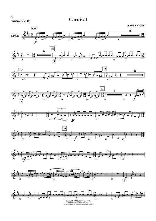 "Carnival - Trumpet 3 in B-flat" Sheet Music by Paul Basler