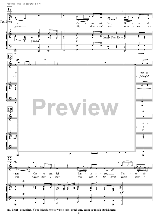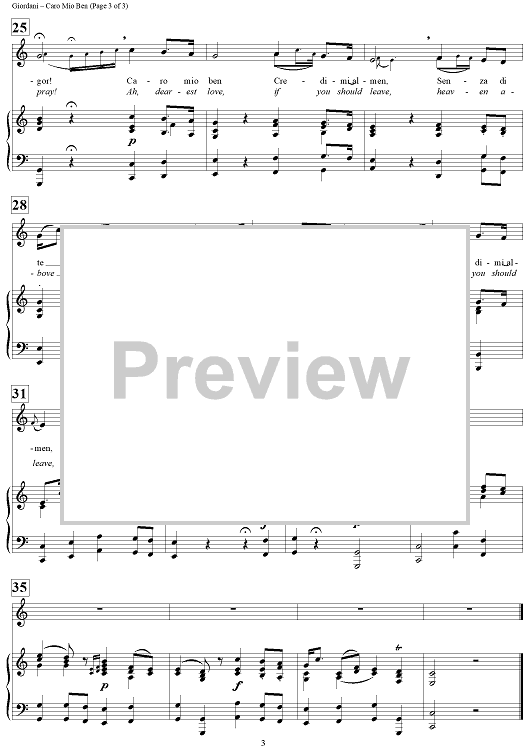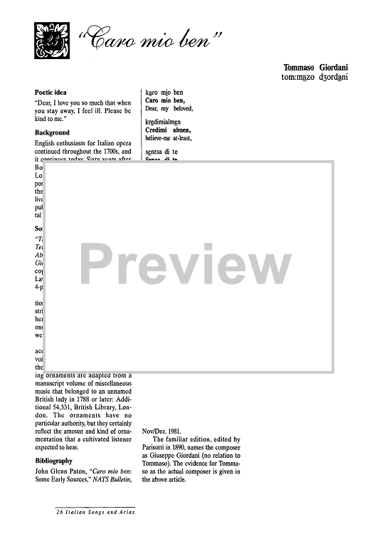"Caro Mio Ben (Ah, dearest love)" Sheet Music by Tommaso Giordani