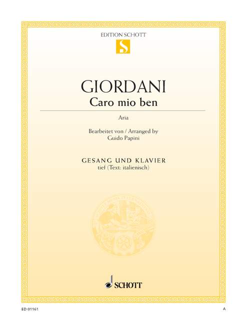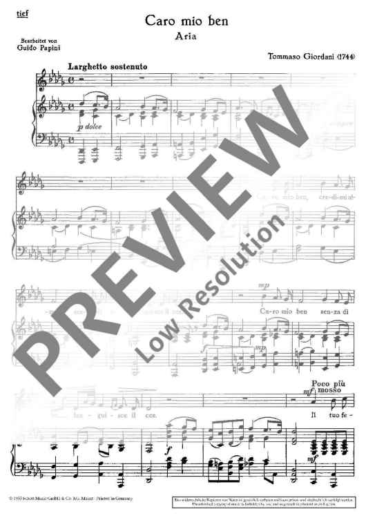 Digital Sheet Music for Caro mio ben in D flat major by Tommaso Giordani, Guido Papini scored for Low Voice And Piano; id:474716