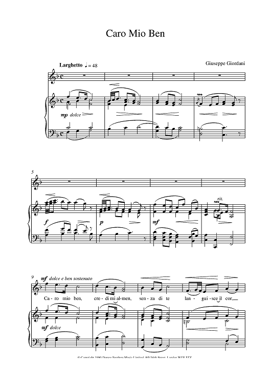 "Caro Mio Ben" Sheet Music by Giuseppe Giordani