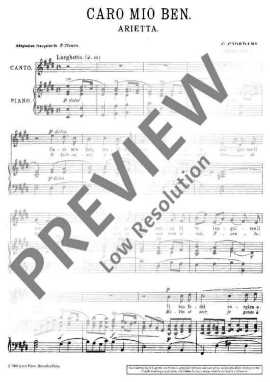 Digital Sheet Music for Caro Mio Ben by Tommaso Giordani scored for Voice And Piano; id:477567