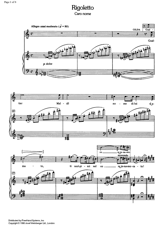 Digital Sheet Music for Caro nome from Rigoletto by Giuseppe Verdi scored for Soprano/Piano; id:332338