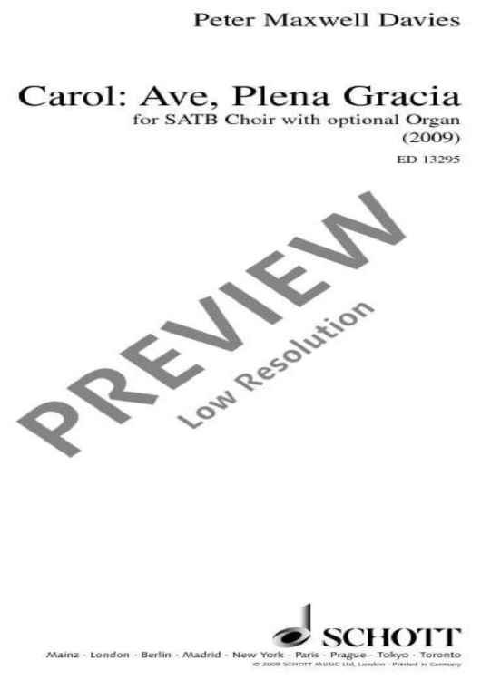 "Carol: Ave, Plena Gracia - Choral Score" Sheet Music by Sir Peter Maxwell Davies