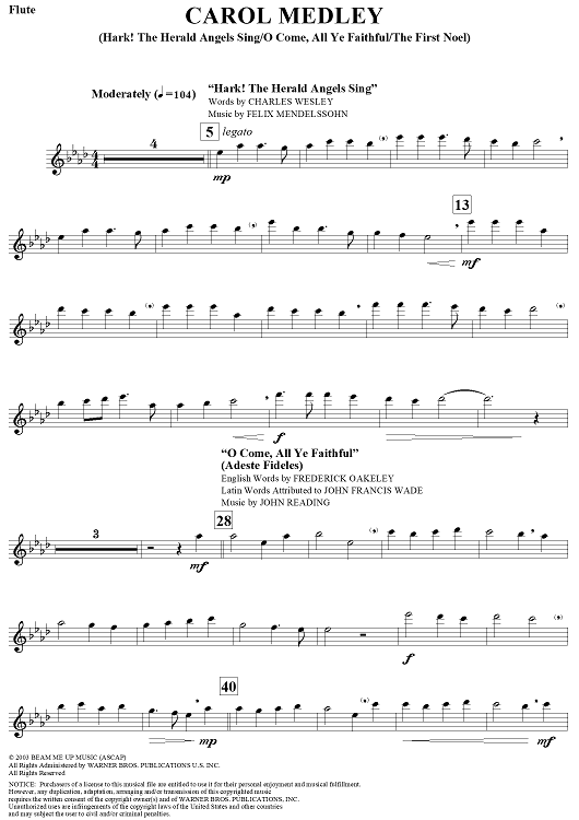 Digital Sheet Music for Carol Medley (Hark! the Herald Angels Sing/O Come, All Ye Faithful/The First Noel) - Flute by Felix Mendelssohn, Charles Wesley, John Reading scored for Flute/Piano; id:313086