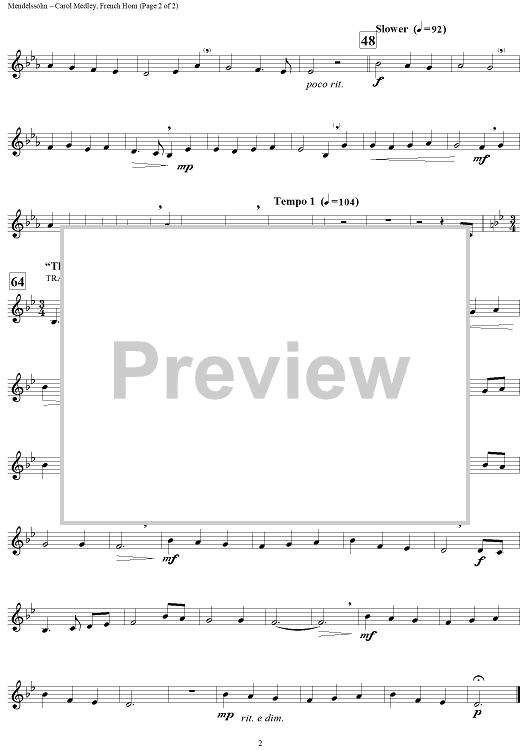 "Carol Medley (Hark! the Herald Angels Sing/O Come, All Ye Faithful/The First Noel) - Horn in F" Sheet Music by Felix Mendelssohn