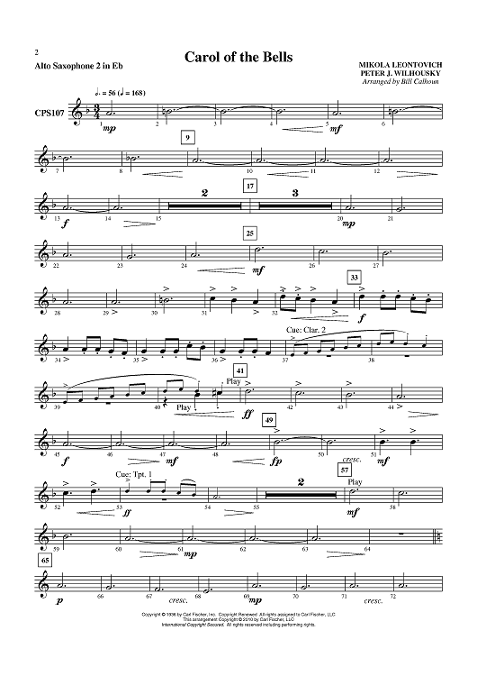 "Carol of the Bells - Alto Sax 2" Sheet Music by Mikola Leontovich