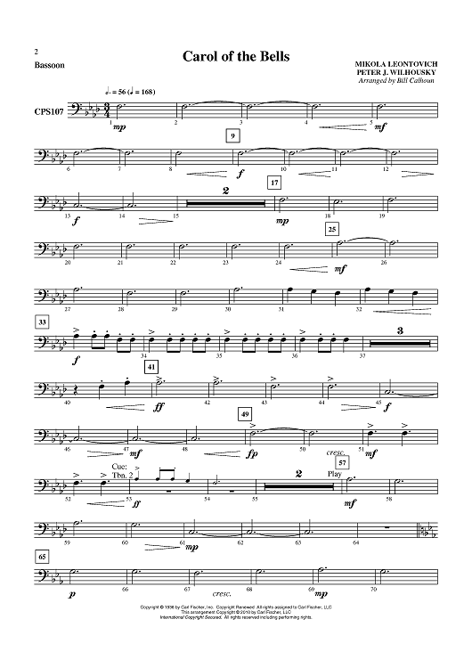 "Carol of the Bells - Bassoon" Sheet Music by Mikola Leontovich