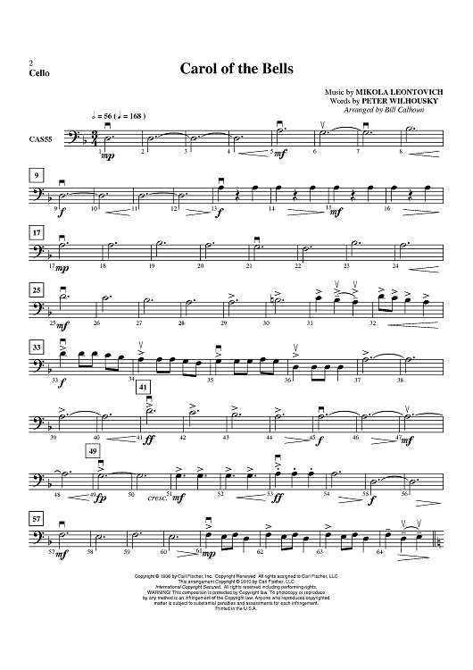 Digital Sheet Music for Carol of the Bells - Cello by Bill Calhoun, Mikola Leontovic scored for Orchestra; id:410954
