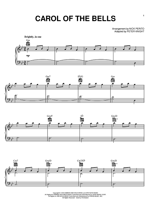 Digital Sheet Music for Carol Of The Bells by The Carpenters, Peter Knight, Nick Perito scored for Piano; id:368571
