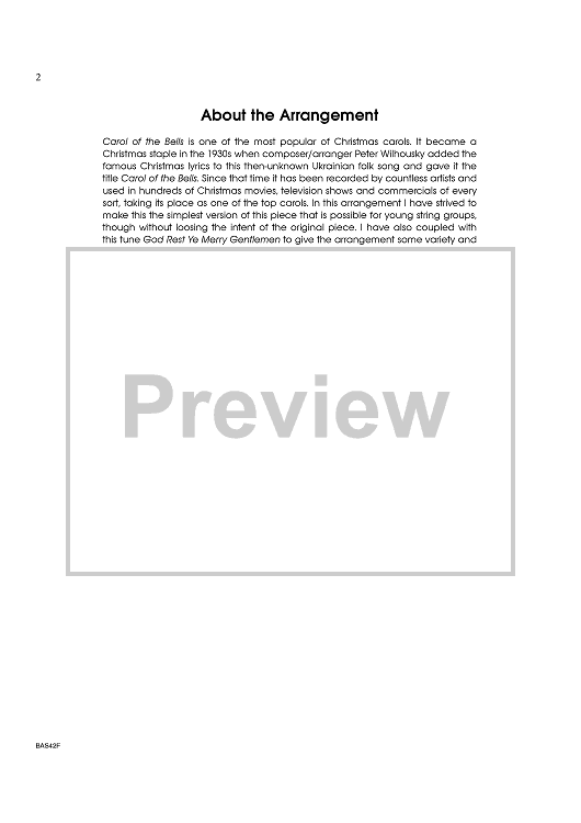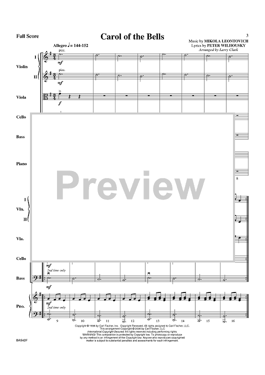 Digital Sheet Music for Carol Of The Bells - Score by Larry Clark, Mikola Leontovich scored for Orchestra; id:406739