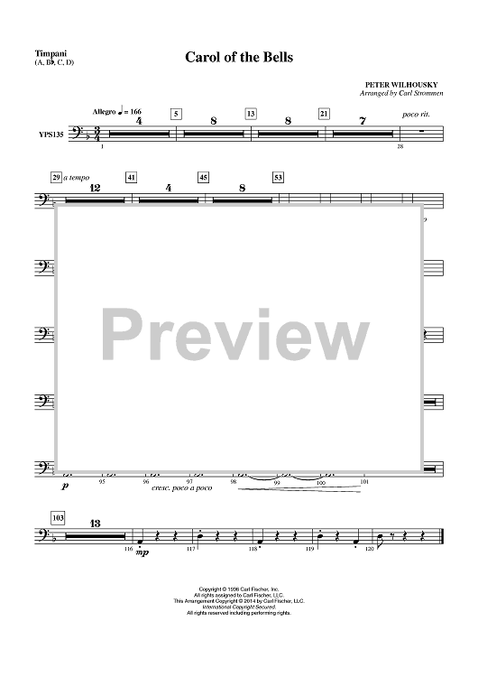 "Carol of the Bells - Timpani" Sheet Music by Peter J. Wilhousky