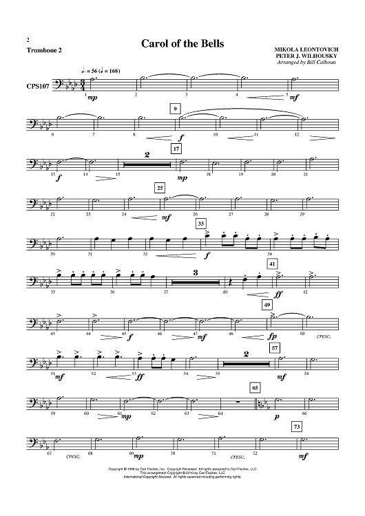 "Carol of the Bells - Trombone 2" Sheet Music by Mikola Leontovich