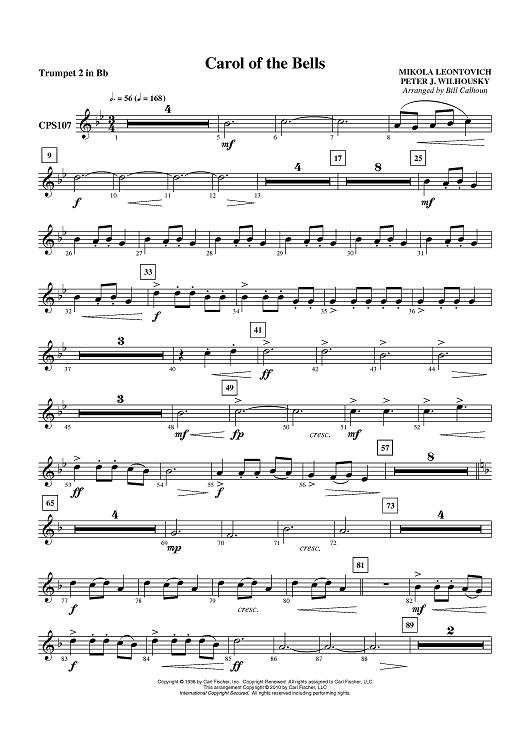 "Carol of the Bells - Trumpet 2 in Bb" Sheet Music by Mikola Leontovich
