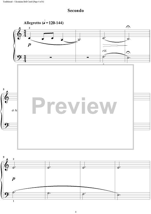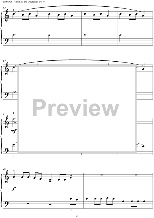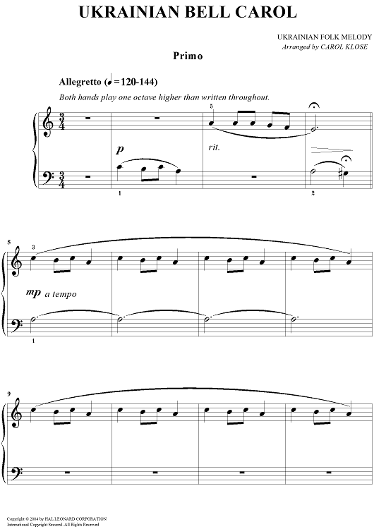 Digital Sheet Music for Carol of the Bells (Ukrainian Bell Carol) by Traditional Ukrainian Carol, Carol Klose scored for 1 Piano, 4 Hands; id:375436