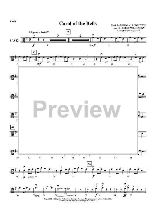 Digital Sheet Music for Carol Of The Bells - Viola by Larry Clark, Mikola Leontovich scored for Orchestra; id:406743
