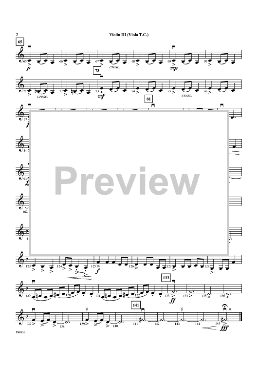 Digital Sheet Music for Carol of the Bells - Violin 3 by Bill Calhoun, Mikola Leontovic scored for Orchestra; id:410952