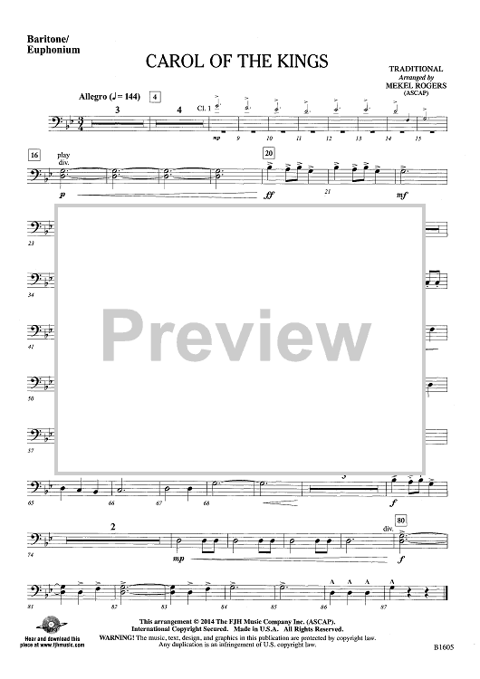 Digital Sheet Music for Carol of the Kings - Baritone/Euphonium by Traditional, Mekel Rogers scored for Concert Band; id:443379
