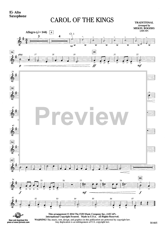 Digital Sheet Music for Carol of the Kings - Eb Alto Sax by Traditional, Mekel Rogers scored for Concert Band; id:443372