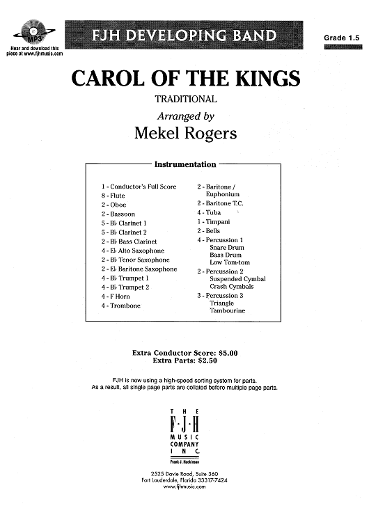 Digital Sheet Music for Carol of the Kings - Score Cover by Traditional, Mekel Rogers scored for Concert Band; id:443365