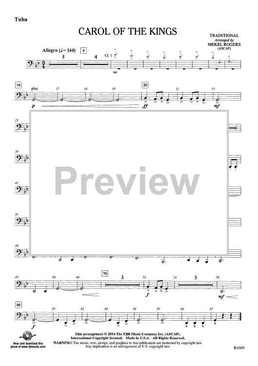 Digital Sheet Music for Carol of the Kings - Tuba by Traditional, Mekel Rogers scored for Concert Band; id:443381