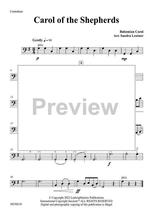 Digital Sheet Music for Carol of the Shepherds - Contrabass by Traditional, Sandra Lentner scored for String Orchestra; id:507697