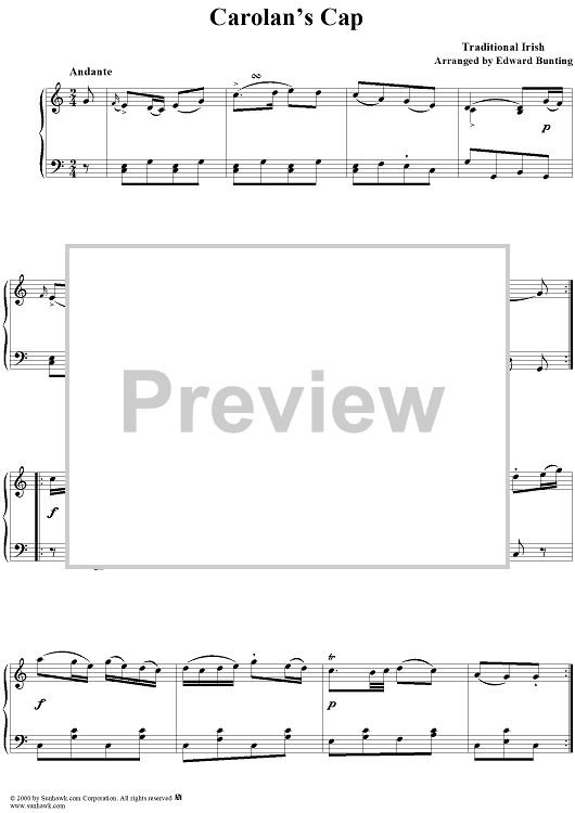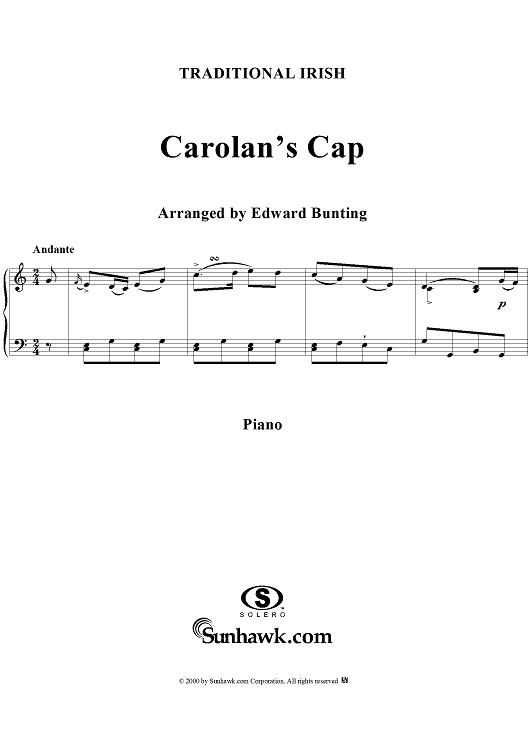 Digital Sheet Music for Carolan's Cap by , Edward Bunting, Traditional scored for Piano Solo; id:260654