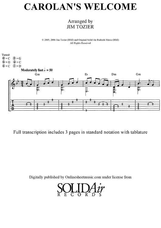 "Carolan's Welcome (With Embedded Audio)" Sheet Music by Jim Tozier
