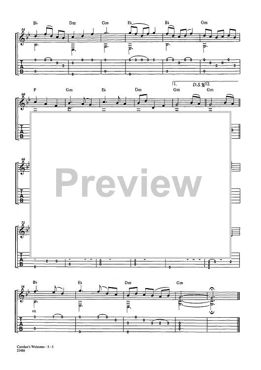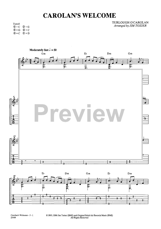 Digital Sheet Music for Carolan's Welcome (With Embedded Audio) by Turlough O'Carolan, Jim Tozier scored for Guitar Tab; id:451630