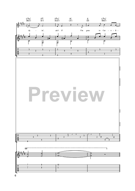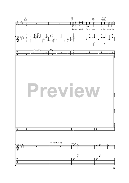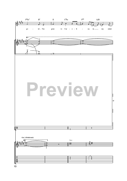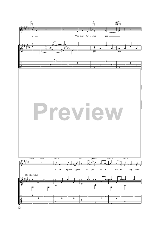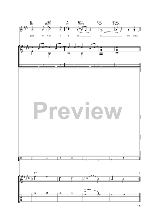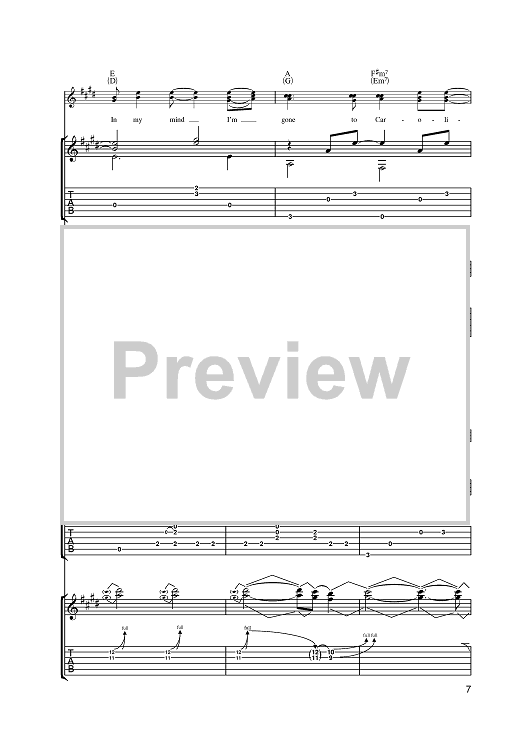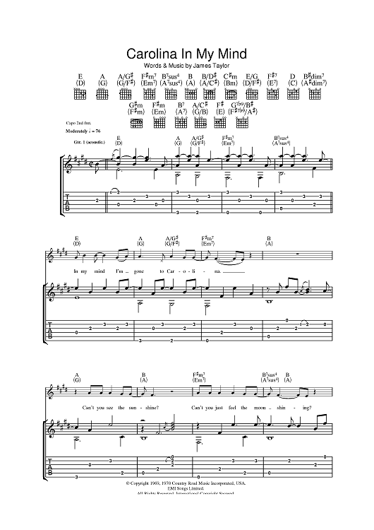 Digital Sheet Music for Carolina In My Mind by James Taylor scored for Guitar Tab; id:395846