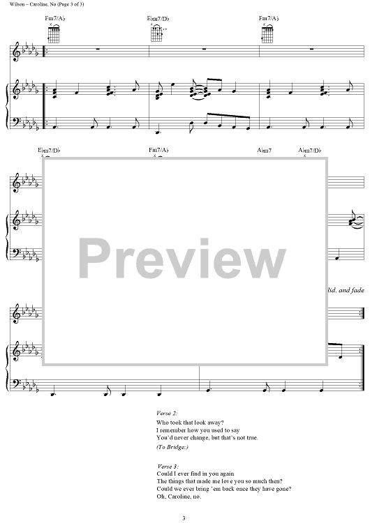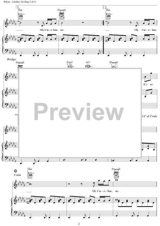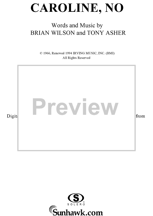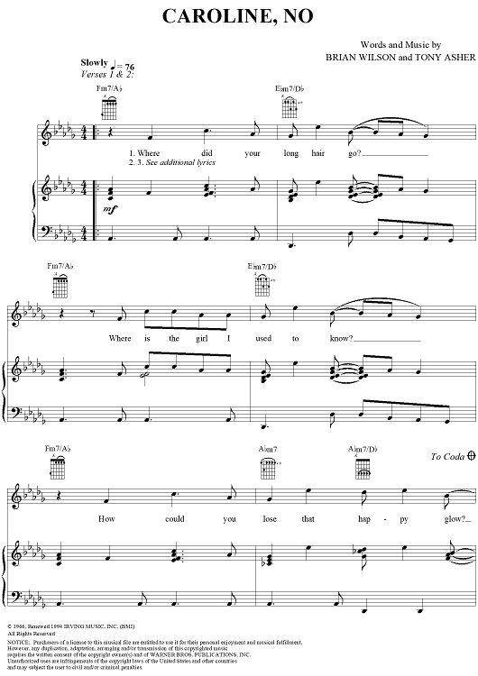 Digital Sheet Music for Caroline, No by Brian Wilson, The Beach Boys, Tony Asher scored for Piano/Vocal/Chords; id:264570