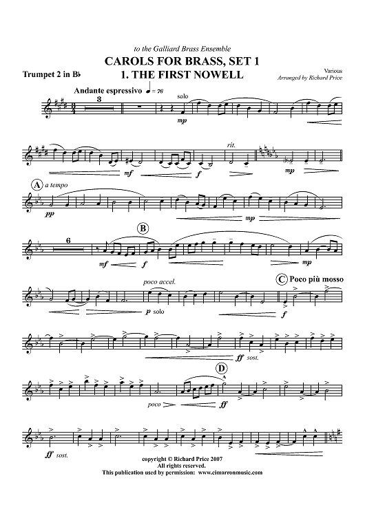 "Carols for Brass, Set 1 - Trumpet 2 in B-flat" Sheet Music by Various