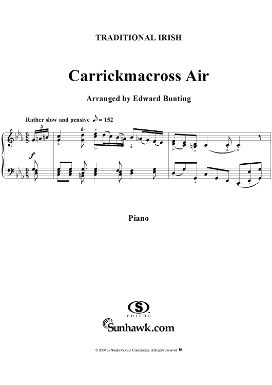 Digital Sheet Music for Carrickmacross Air by , Edward Bunting, Traditional scored for Piano Solo; id:240565