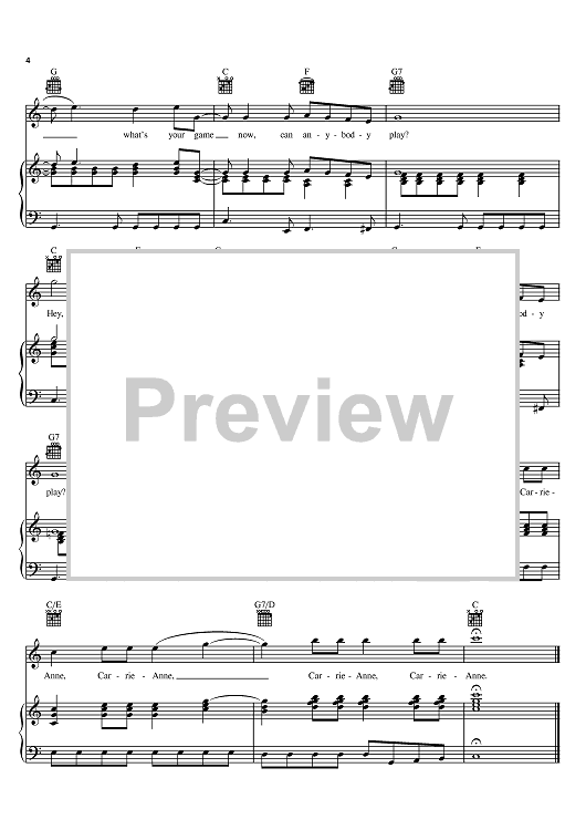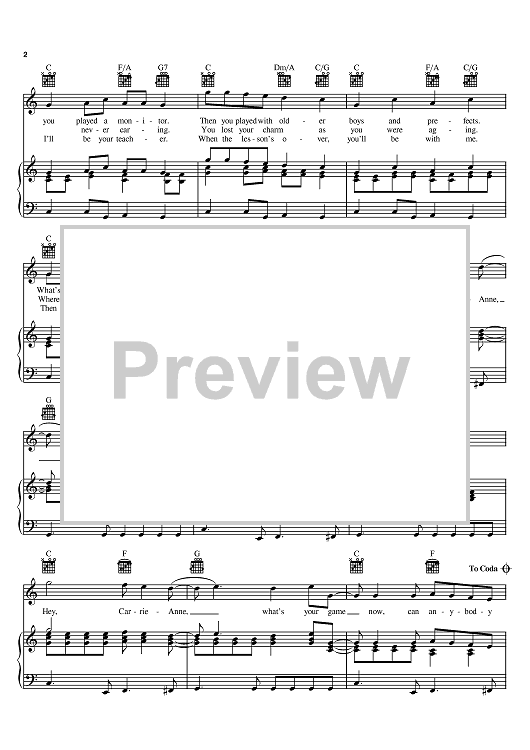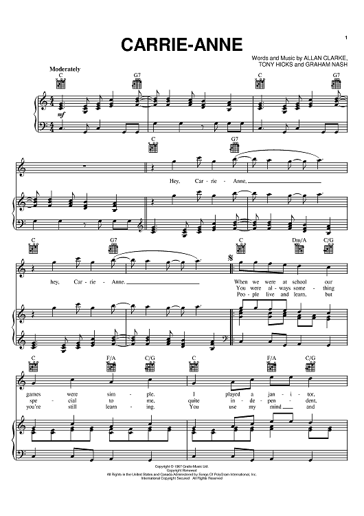 Digital Sheet Music for Carrie-Anne by Graham Nash, Allan Clarke, Tony Hicks, The Hollies scored for Piano/Vocal/Chords; id:392519