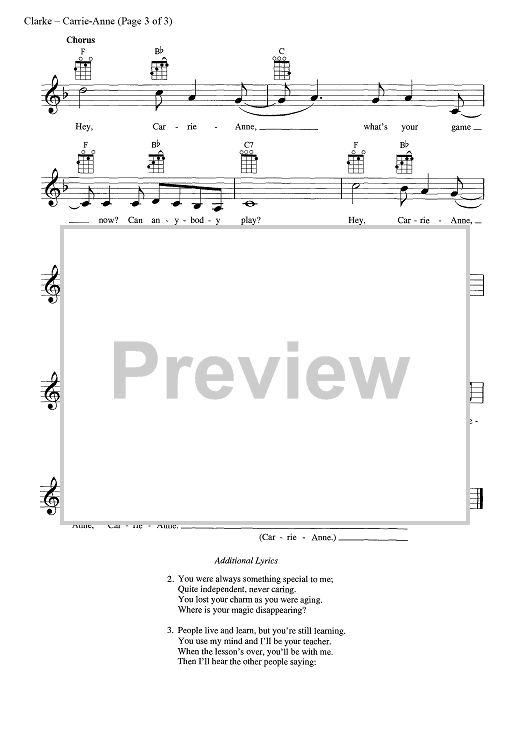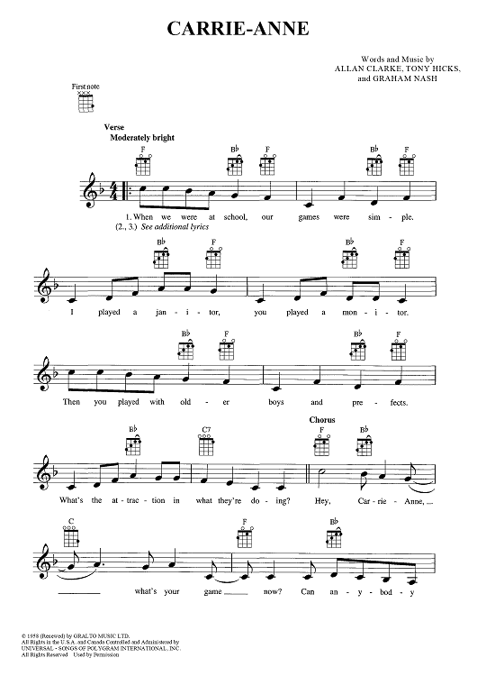 Digital Sheet Music for Carrie-Anne by Graham Nash, Allan Clarke, Tony Hicks, The Hollies scored for Ukulele/Vocal; id:449183