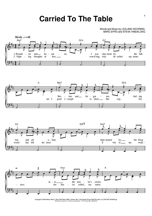 Digital Sheet Music for Carried To The Table by Marc Byrd, Steve Hindalong, Leeland Mooring, Leeland scored for Piano/Vocal/Chords; id:395113