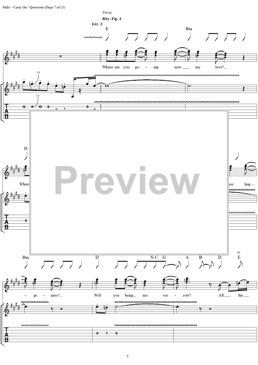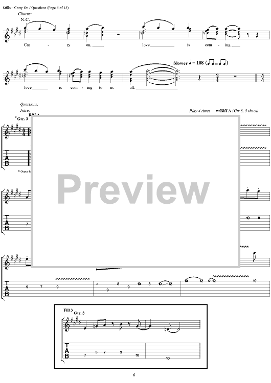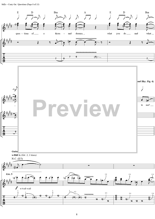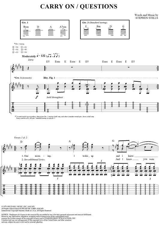 "Carry On / Questions" Sheet Music by Crosby, Stills, Nash & Young