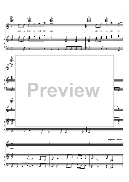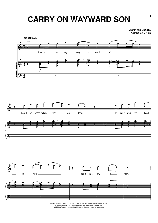 Digital Sheet Music for Carry On Wayward Son by Kerry Livgren, Kansas scored for Piano/Vocal/Chords; id:368024