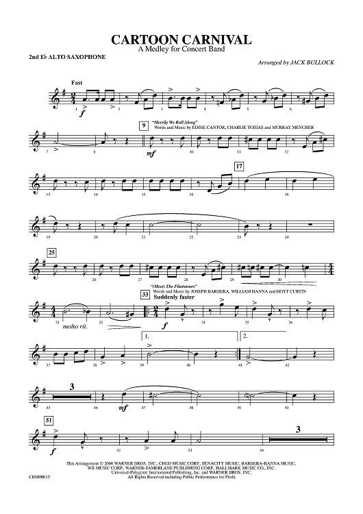 Digital Sheet Music for Cartoon Carnival - Alto Saxophone 2 by Various, Jack Bullock scored for Concert Band; id:315733