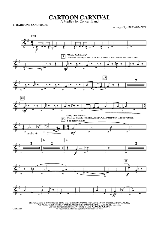 Digital Sheet Music for Cartoon Carnival - Baritone Saxophone by Various, Jack Bullock scored for Concert Band; id:315735