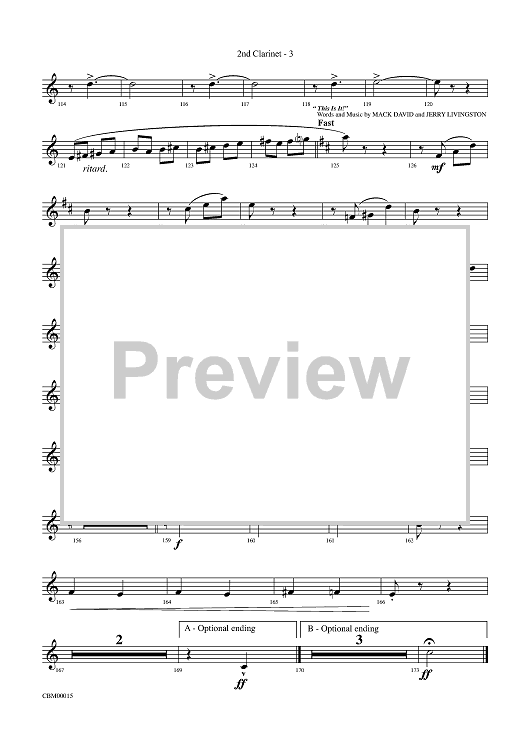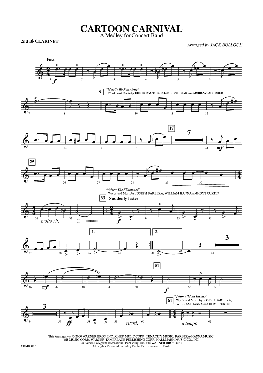 Digital Sheet Music for Cartoon Carnival - Clarinet 2 by Various, Jack Bullock scored for Concert Band; id:315727