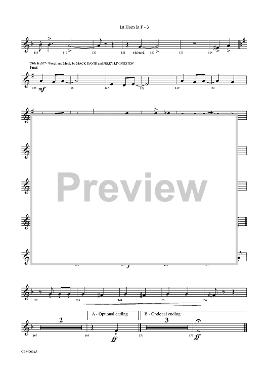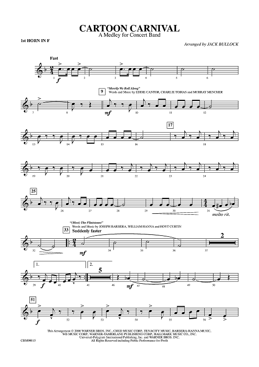 Digital Sheet Music for Cartoon Carnival - Horn in F 1 by Various, Jack Bullock scored for Concert Band; id:315739