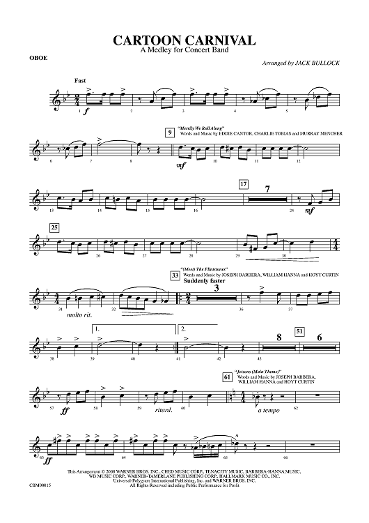 Digital Sheet Music for Cartoon Carnival - Oboe by Various, Jack Bullock scored for Concert Band; id:315725