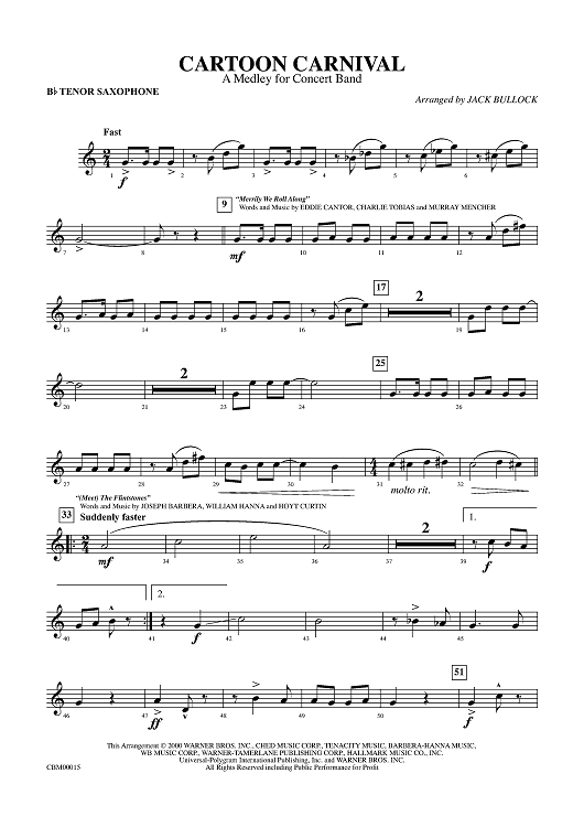 Digital Sheet Music for Cartoon Carnival - Tenor Saxophone by Various, Jack Bullock scored for Concert Band; id:315734
