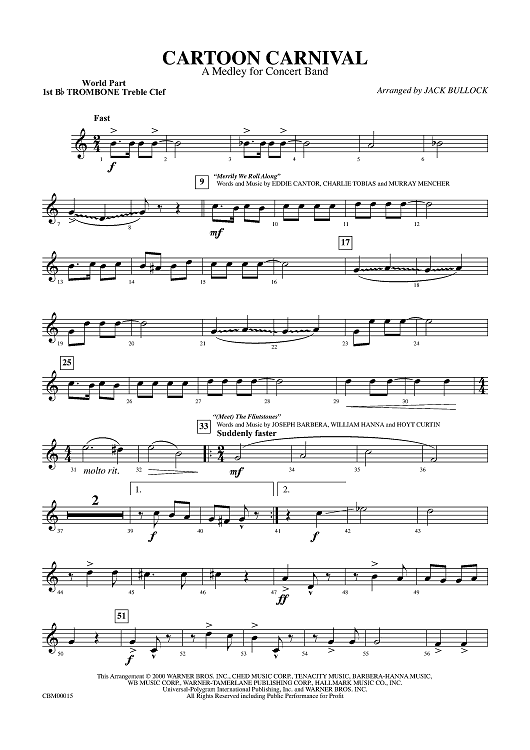 "Cartoon Carnival - Trombone 1 in B-flat TC" Sheet Music by Various