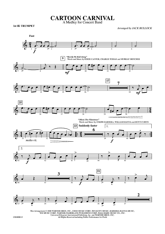 Digital Sheet Music for Cartoon Carnival - Trumpet 1 by Various, Jack Bullock scored for Concert Band; id:315736