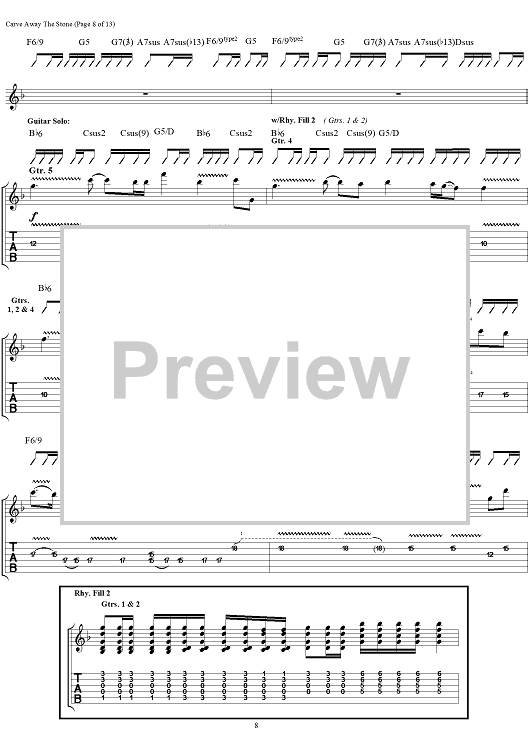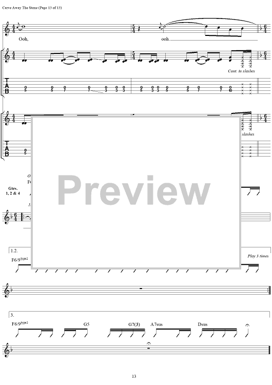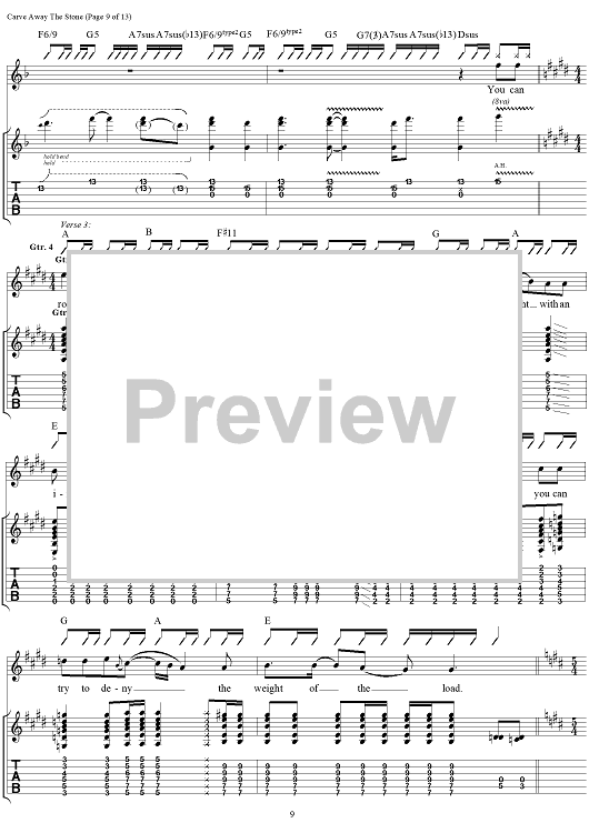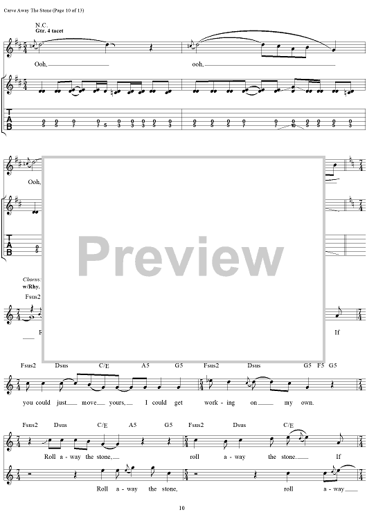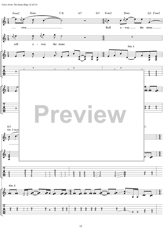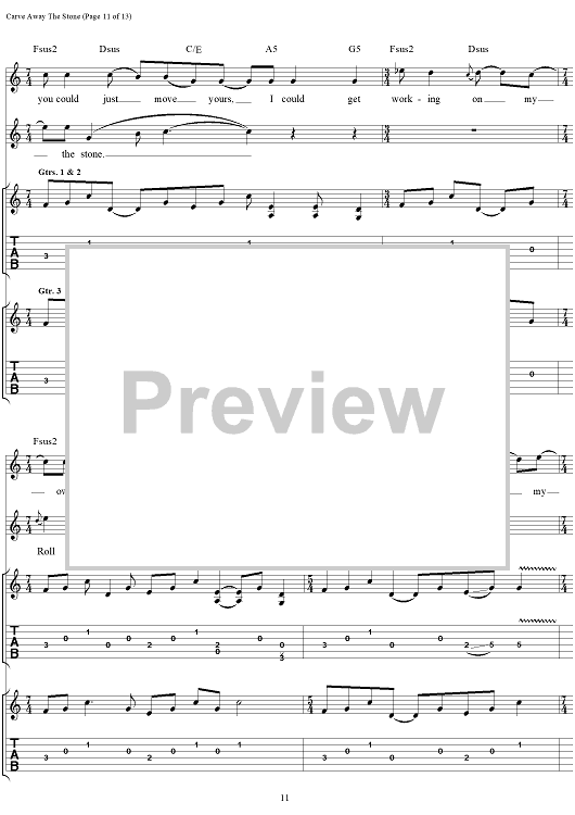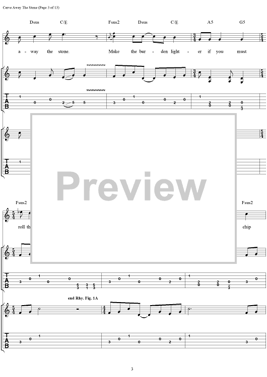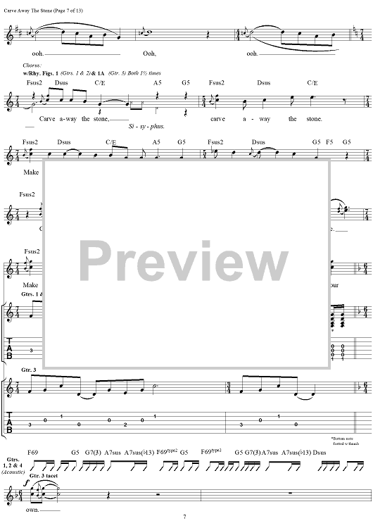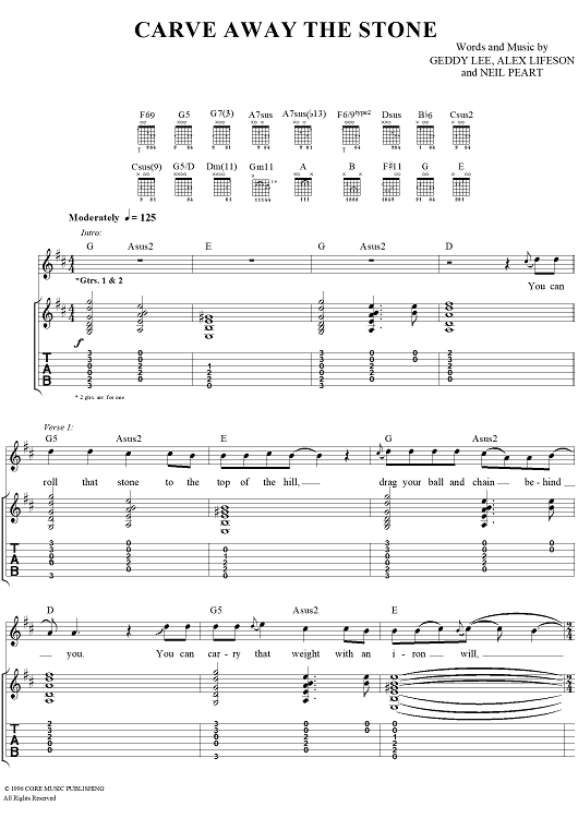 Digital Sheet Music for Carve Away The Stone by Rush, Geddy Lee, Alex Lifeson, Neil Peart scored for Guitar Tab/Vocal; id:111345