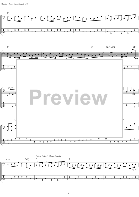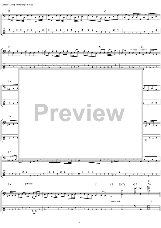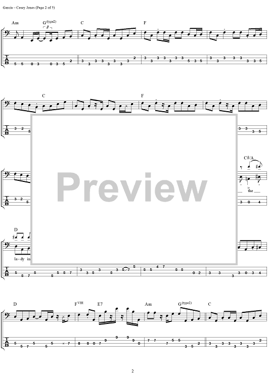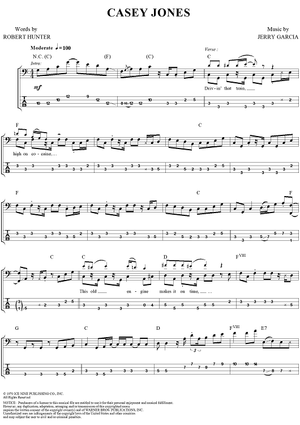 Digital Sheet Music for Casey Jones by Jerry Garcia, Robert Hunter, Grateful Dead scored for Bass Tab/Vocal; id:284953